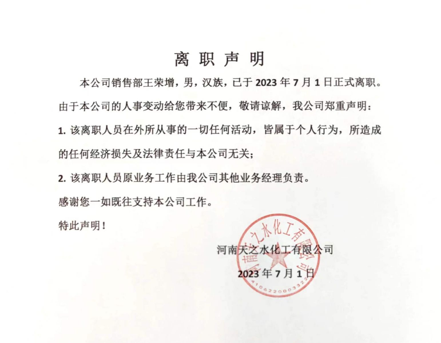 離職聲明